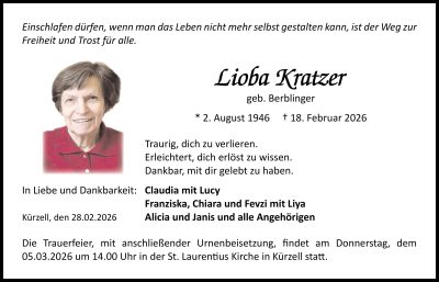 aktuelle Traueranzeigen vom 28.02.2026
