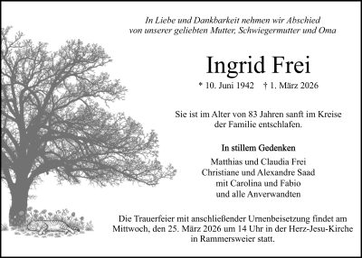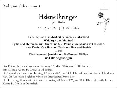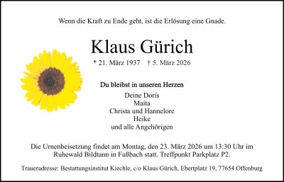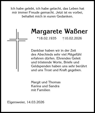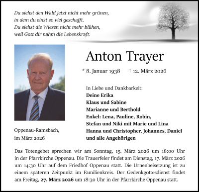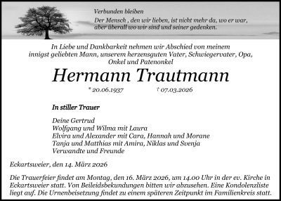 aktuelle Traueranzeigen vom 14.03.2026