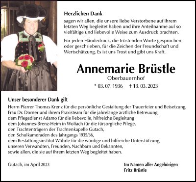 weitere Traueranzeigen