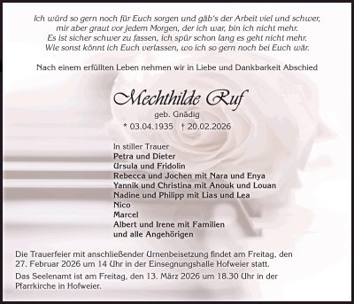 weitere Traueranzeigen